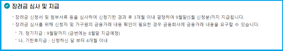 정기 신청은 5월에 이루어지며, 신청 후 약 3개월 이내에 지급됩니다.