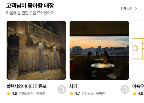 - 음식 종류별 추천 : 초밥 오마카세, 한우 오마카세 등 다양한 카테고리로 음식점을 찾아볼 수 있습니다.