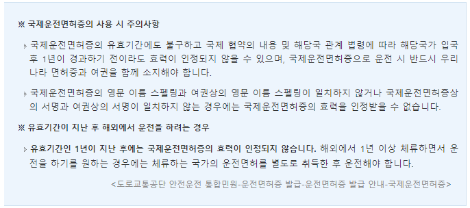 있는 경우 국제운전면허증이 거부될 수 있으니, 아래에서 미리 조회해 보시기 바랍니다.