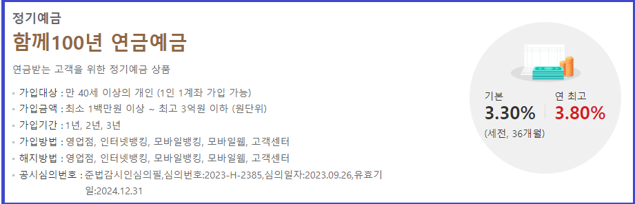 √ 함께 100년 연금예금 금리는 연 최고 3.80%이며,