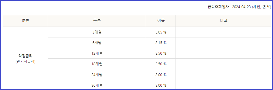 √ 약정금리는 다음과 같습니다.