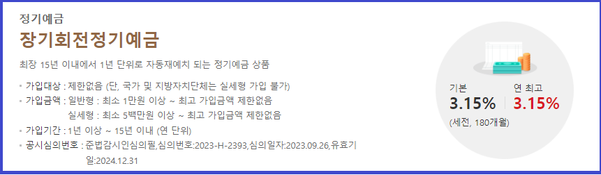 √ 장기회전정기예금 금리는 연 최고 3.15%이며,