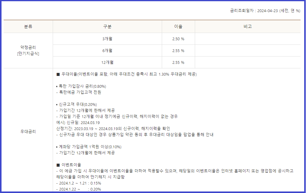 √ 정기예금 금리는 연 최고 2.55%이며,