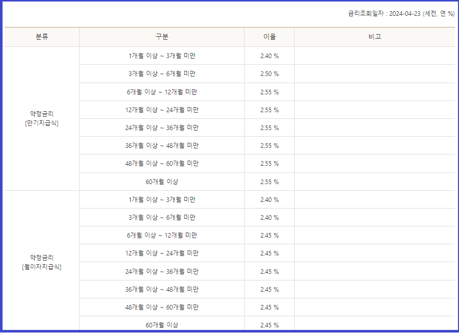 참고로, 온라인(모바일) 전용상품이 은행창구(대면) 상품보다 더 높은 금리를 받을 수