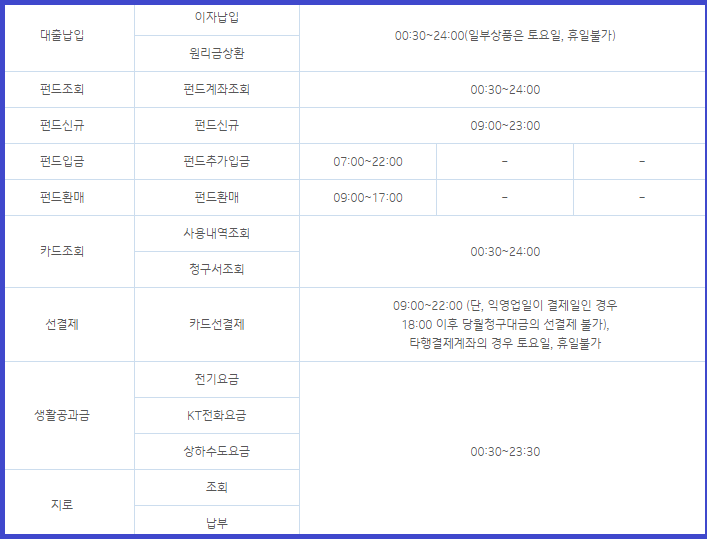 통상적으로 기존 은행의 영업시간 (오전 9시 ~ 오후 4시) 이 종료된 이후에도