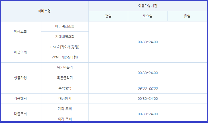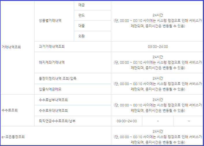 이 시간에는 인터넷뱅킹을 포함한 모든 업무가 중단됩니다.