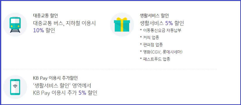 - 생활서비스 할인 영역에서 KB Pay 이용시 추가 5% 할인