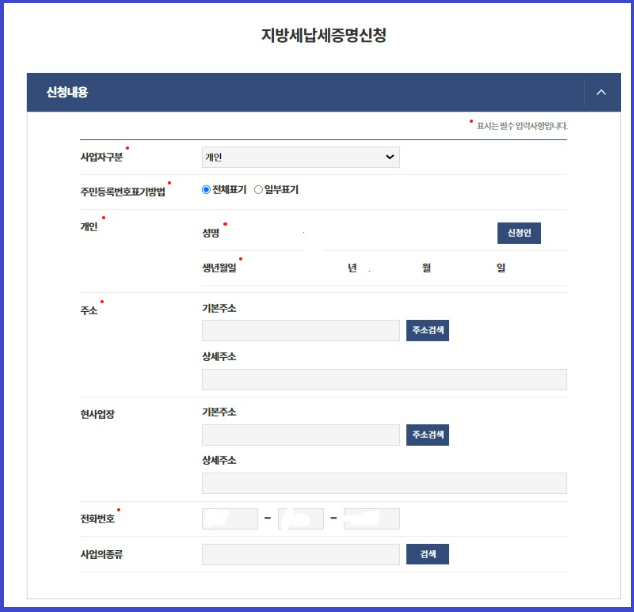 개인사업자는 사업자등록번호로 지방세납부증명서를 발급받으시는 것이 아니고,