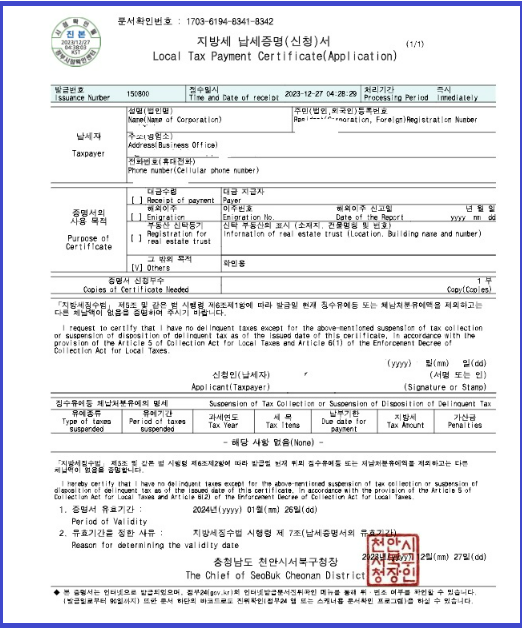 지방세 완납증명서 유효기간은 받는 곳마다 다를 수 있지만,