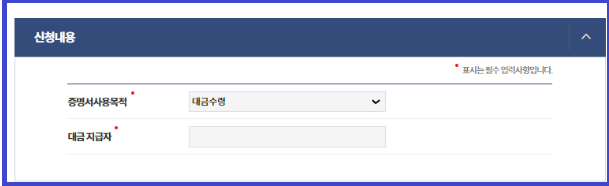 4. 지방세납세증명서신청 관련, 신청내용, 수령방법 등을 입력한 후, 민원신청하기를 클릭합니다.