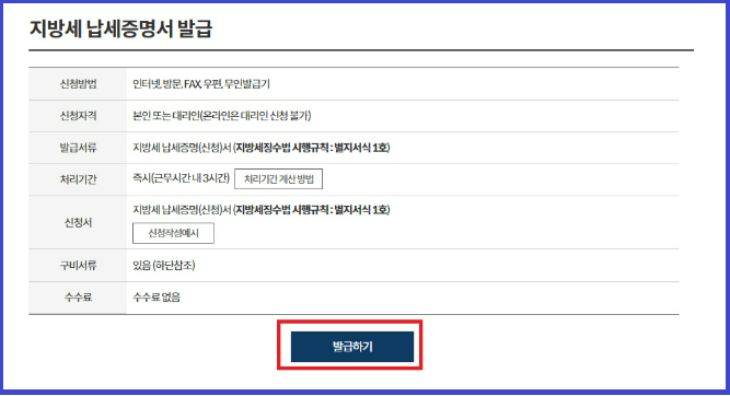 지방세 납세증명서 동사무소 방문 발급