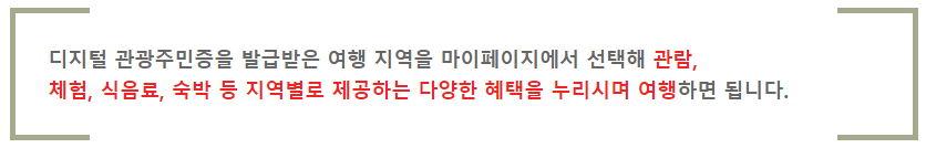 (디지털 관광주민증으로 현지 숙박, 식음료, 입장권 등 지역 여행 시 할인 제공을 받을 수