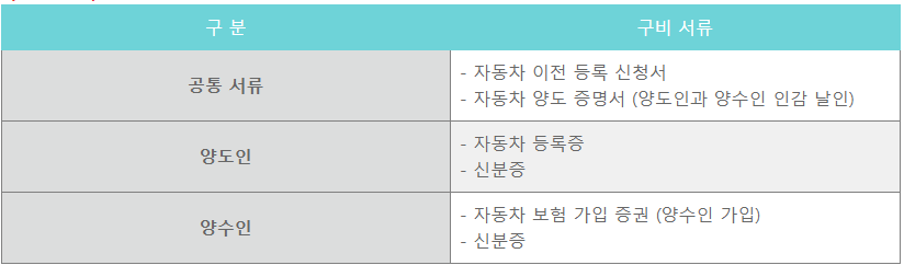 자동차 명의변경 구비서류