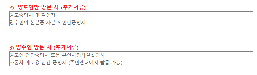 양도인 혼자 방문할 경우 필요서류가 다르기 때문에 확인하시고 방문하시면