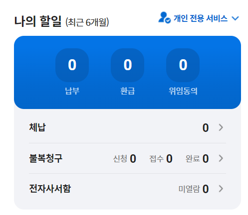 3. 우측 화면에서 나의 할 일에 납부할 재산세가 있을 경우 숫자가 표시되며,
