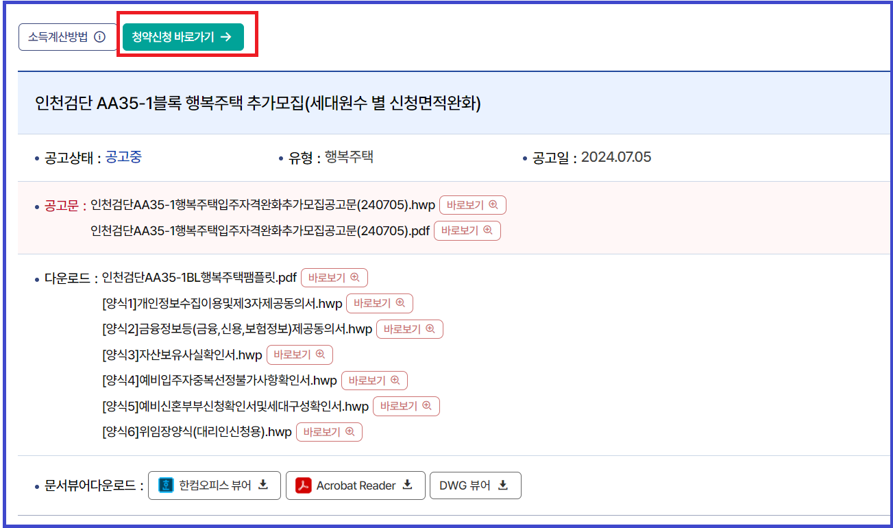 여기서 맘에 드실 경우, 청약신청 바로가기를 통해 청약신청을 하시면 됩니다.