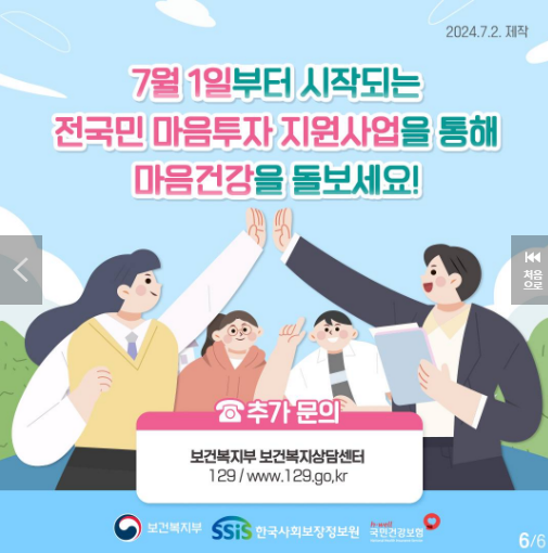 「전 국민 마음투자 지원사업」이 2024년 7월 1일부터 시작되었습니다.