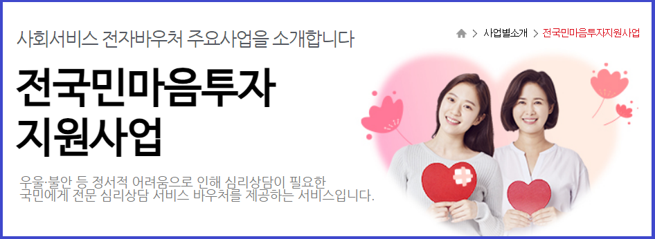 우울·불안 등 정서적 어려움이 있는 국민에게 전문적인 심리상담 서비스를 제공하는