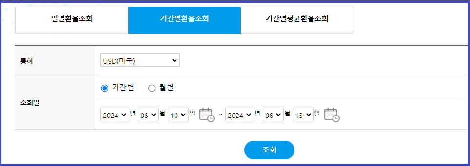 3. 조회기간 (2024.6.10 ~ 2024.6.13) 동안의 환율이 조회됩니다.