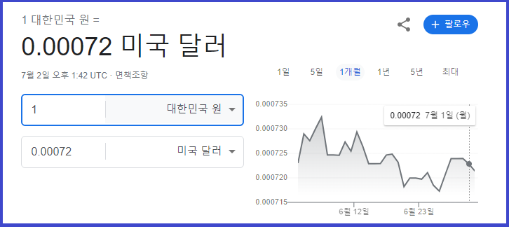 구글 환율 계산기는 전 세계 대부분의 통화를 지원하므로,