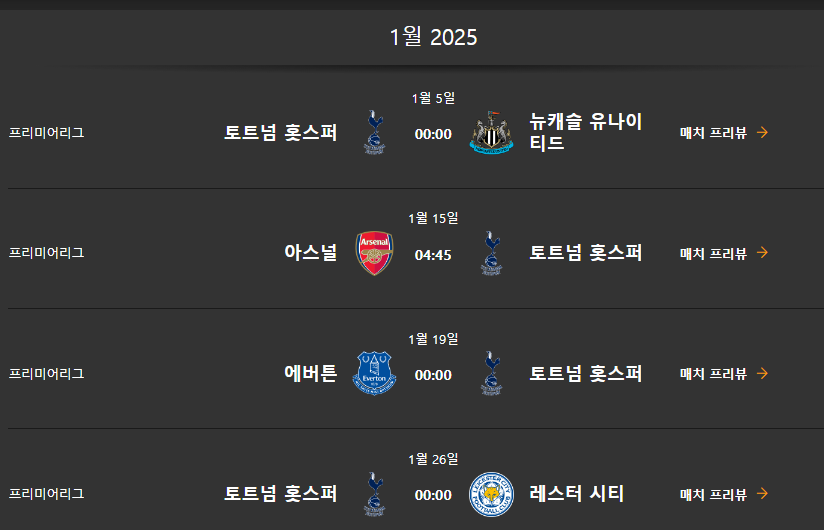 토트넘 경기일정 및 결과 보기